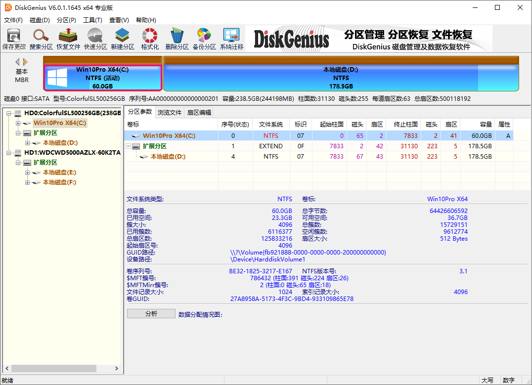 DiskGenius 是一款专业级的 数据恢复软件 ,算法精湛、功能强大,用户群体广泛;支持各种情况下的文件恢复、分区恢复,恢复效果好;文件预览、扇区编辑、加密分区恢复、Ext4分区恢复、RAID恢复等高级功能。