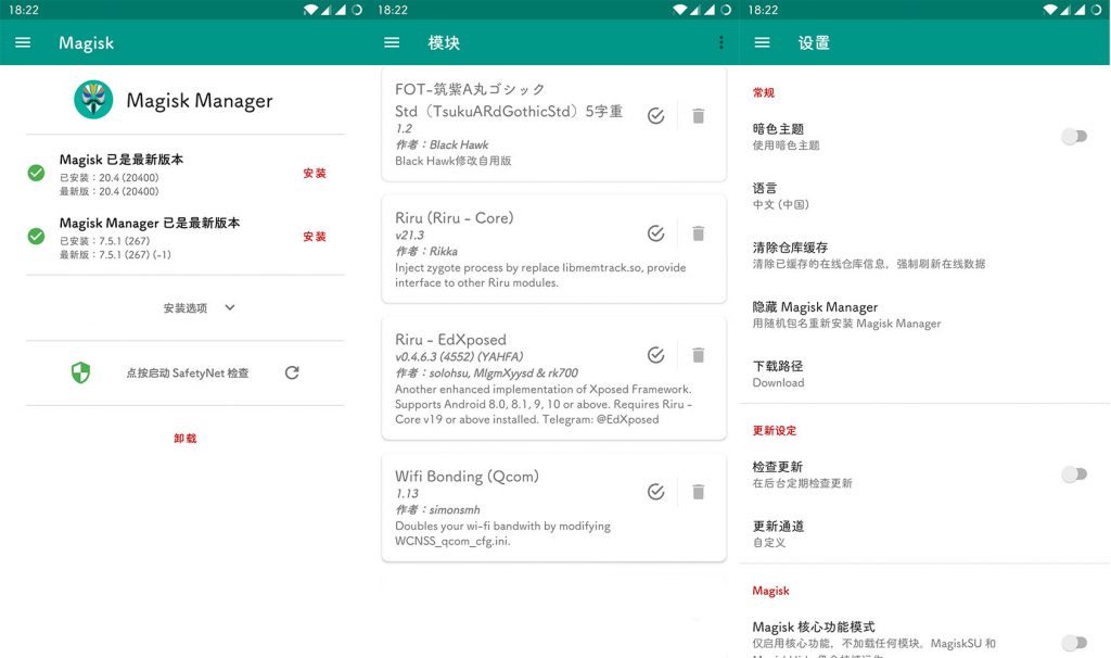 Magisk v23.0及以下版本为Riru版本