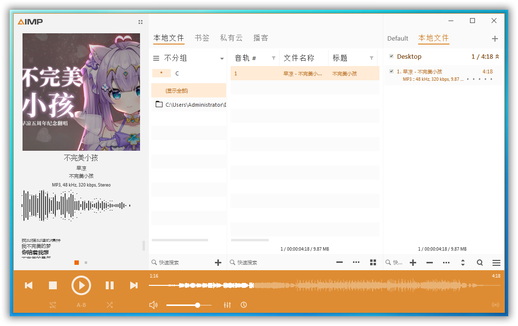 AIMP是一款免费的音频播放器,支持多种音频格式,包括MP3、OGG、FLAC、WAV、AAC等。它具有简洁的界面和强大的功能,是一款非常受欢迎的音频播放器。