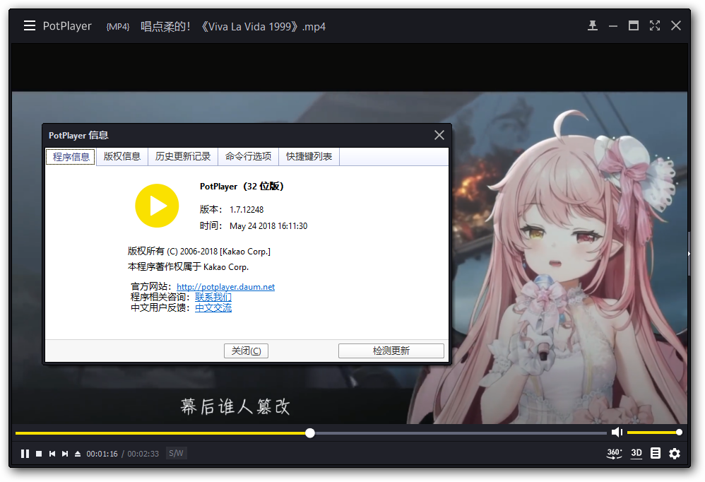 Daum PotPlayer,史上最强大多媒体播放器,内置强大解码器的全能视频播放器。它体积小巧、界面简洁、解码功能强大,是本地视频播放器的不二之选!它启动快,播放过程稳定,看高清大片无任何问题,对外挂字幕的支持很不错,无需装第三方解码器即可播放主流格式视频,支持BD和MKV等大视频流畅播放。